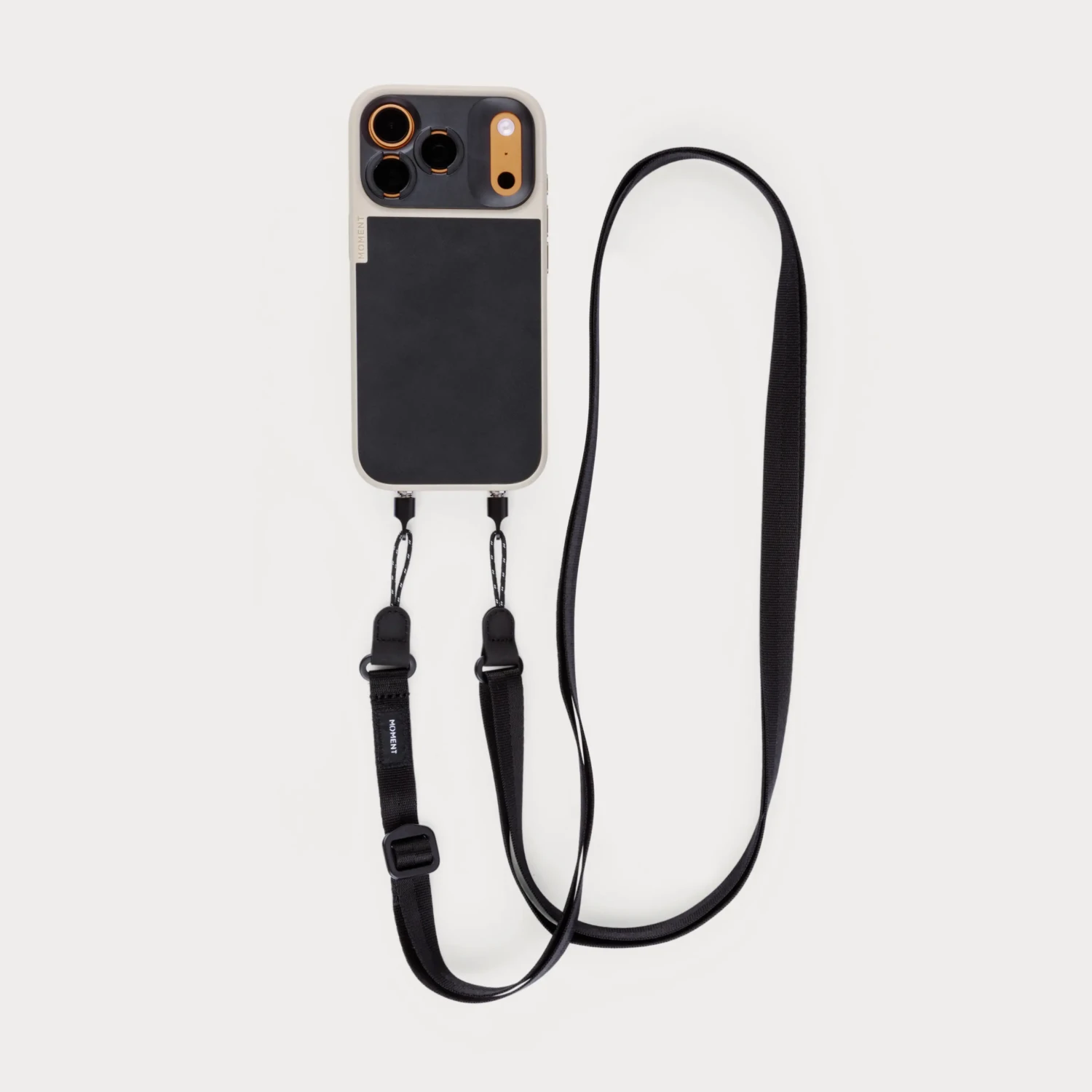 Funda Moment para iPhone 17: La correa se conecta directamente al punto de fijación integrado en cada funda Moment.