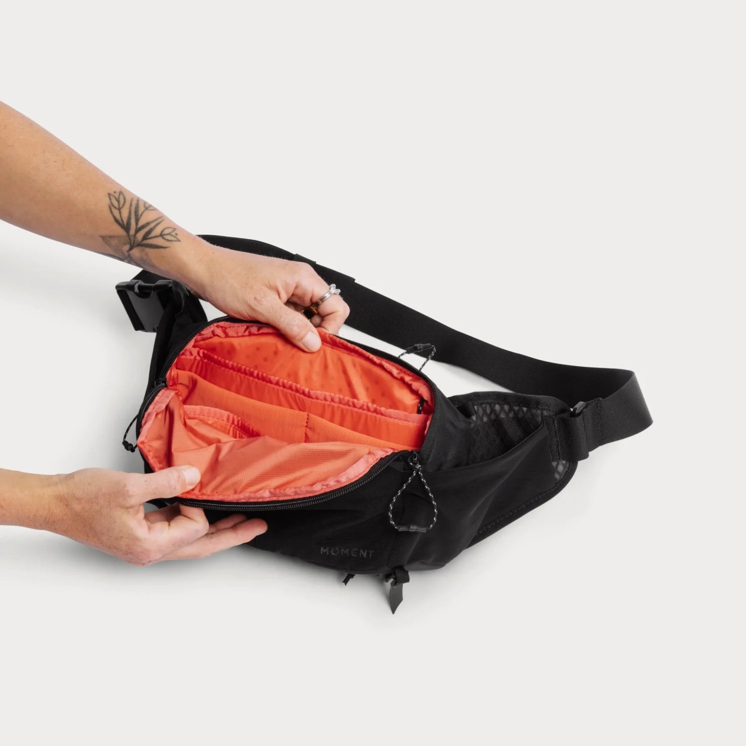 La Moment Slate Sling 4L es una mochila diseñada como una riñonera de alta gama que resulta igual de cómoda cuando se lleva cruzada. Su característico diseño de perfil bajo en la zona de la cintura distribuye el peso de manera uniforme por todo el cuerpo, por lo que resulta cómoda durante todo el día.