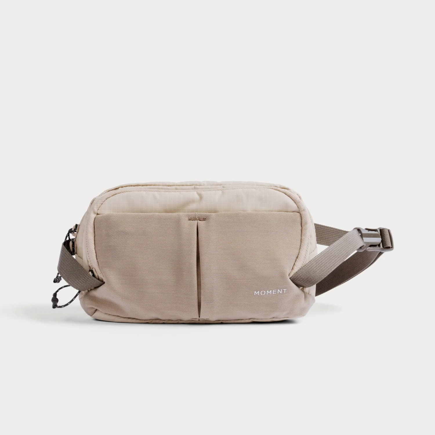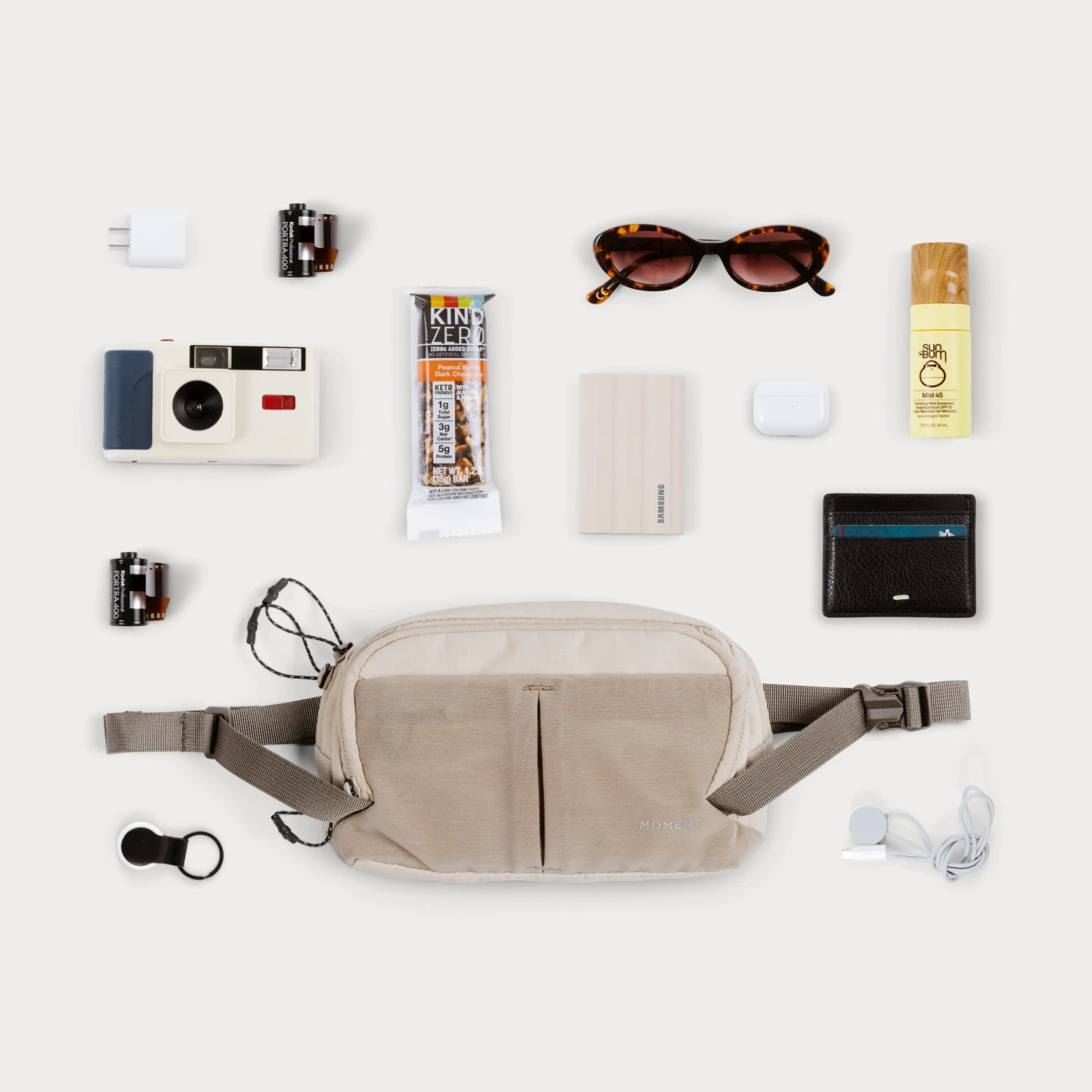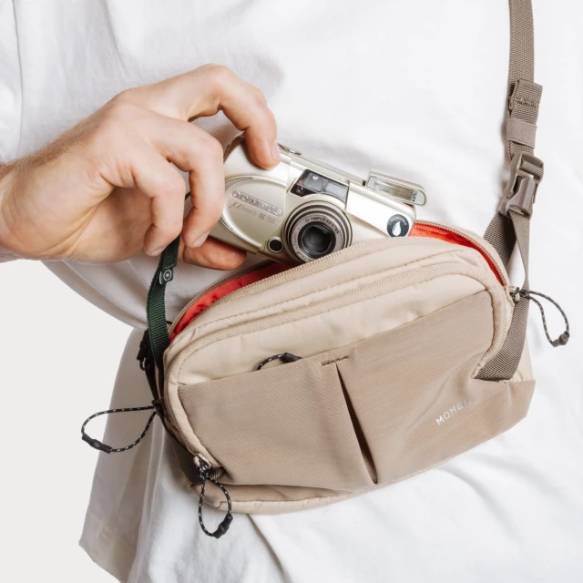 La Take Sling es la opción más ligera y de más fácil acceso de las bolsas de Momentum. Está diseñada para mantener tu móvil o tu cámara pequeña a salvo, seca y bien sujeta mientras te desplazas.