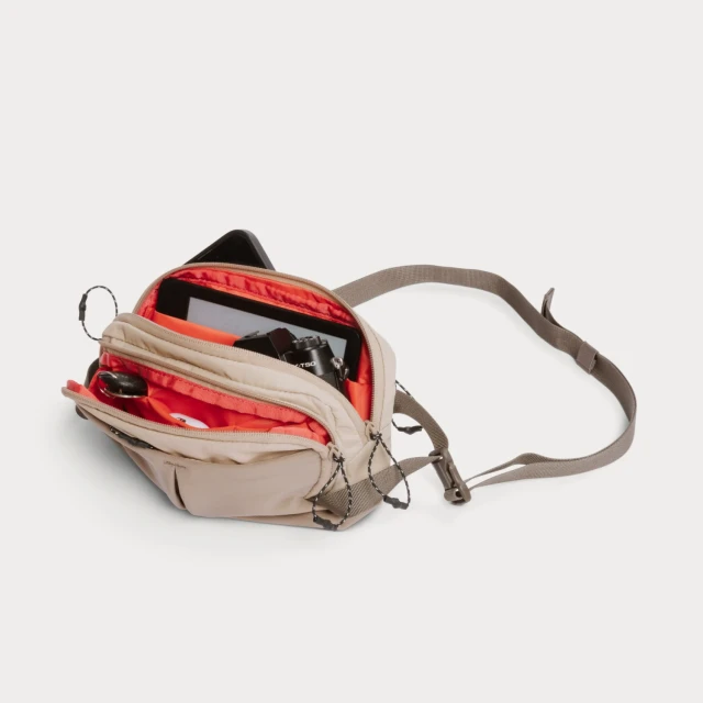 Su diseño ultradelgado tipo bandolera se adapta cómodamente por encima o por debajo de la ropa y se ajusta al cuerpo gracias a sus correas y a los materiales ligeros que se mueven contigo. Los herrajes de ajuste rápido permiten apretar o aflojar la correa al instante, mientras que el compartimento principal tiene capacidad para todos tus objetos esenciales diarios.