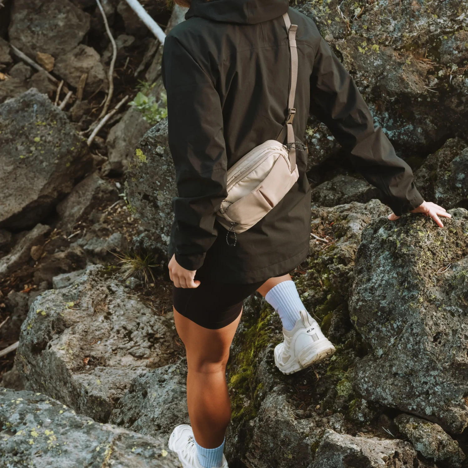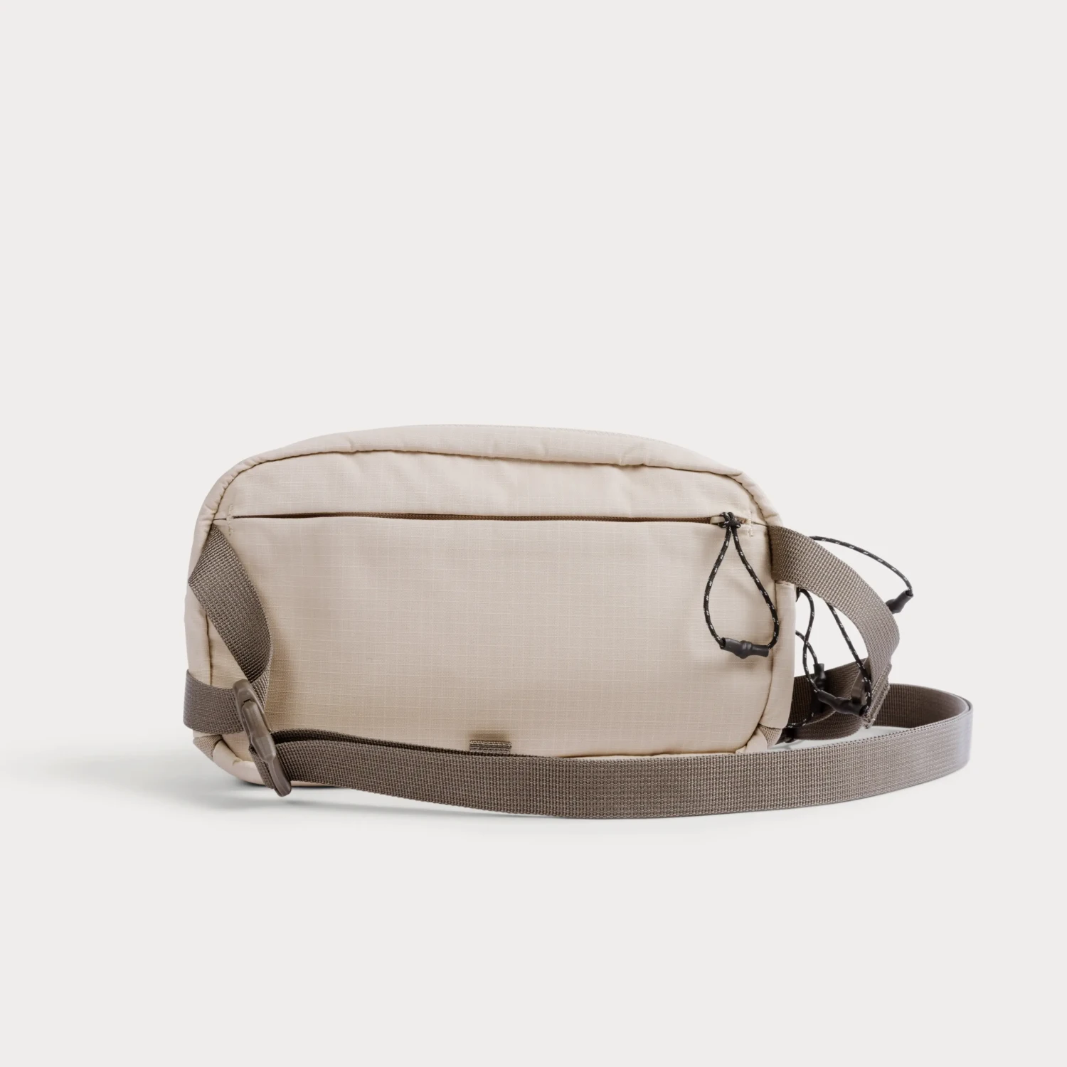 Diseñada como una riñonera rápida o un bolso cruzado minimalista que se puede llevar debajo o sobre la ropa. Su forma más ancha y su construcción ligera se adapta a la cintura y se ajusta cómodamente a la zona lumbar.