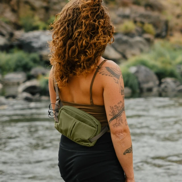 Diseñada como una riñonera rápida o un bolso cruzado minimalista que se puede llevar debajo o sobre la ropa. Su forma más ancha y su construcción ligera se adapta a la cintura y se ajusta cómodamente a la zona lumbar.