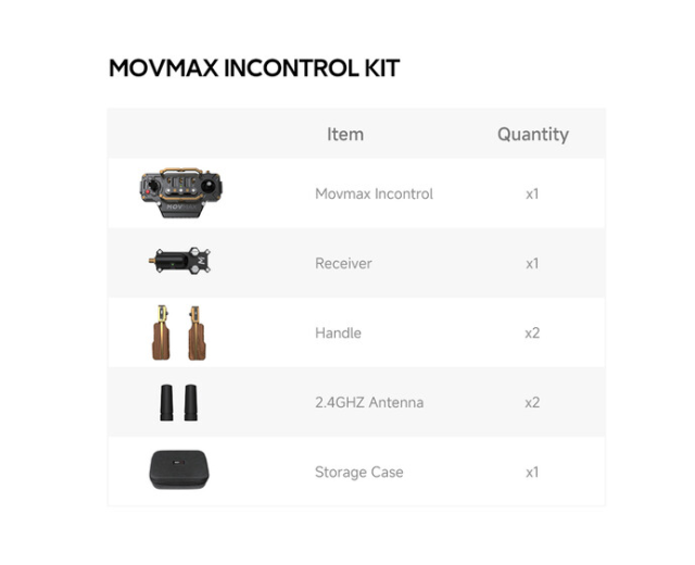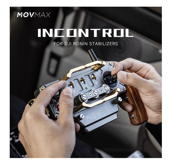 El controlador inalámbrico MOVMAX Incontrol para DJI Ronin ofrece un control preciso y personalizable del cardán hasta una distancia de 150 m (492') a través de la banda de 2,4 GHz, con velocidades y zonas ajustables en los tres ejes, centrado con un solo clic, botón de grabación, joysticks telescópicos de fibra de carbono, empuñaduras de madera extraíbles y batería intercambiable de 3350 mAh 18650 con una autonomía de hasta 15 horas; totalmente compatible con DJI RS 4 Pro, RS 4, RS 3 Pro y RS 2 (excepto el RS 3).