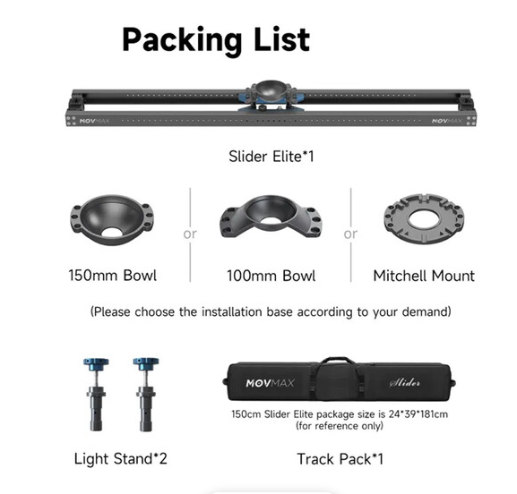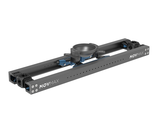 El MOVMAX Slider Elite 35" con montura Mitchell ofrece un desplazamiento manual ultrasuave y silencioso a lo largo de 35,4 pulgadas de robustos rieles de aluminio con un carro de fricción capaz de soportar hasta 55,1 lb, con una base plana Mitchell para rigs de cámara profesionales y adaptadores duales de trípode de 5/8" —incluye en el paquete botones de freno/amortiguadores y una maleta de transporte para facilitar el traslado y el seguimiento cinematográfico en el plató.