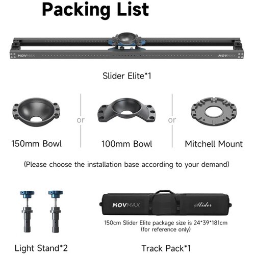 El MOVMAX Slider Elite con soporte Mitchell (70,8") garantiza un movimiento fluido y estable de la cámara para la producción de vídeo profesional. Está fabricado con resistentes rieles de aluminio y equipado con un sistema deslizante basado en la fricción. Soporta hasta 25 kg e incluye adaptadores para trípode de iluminación y una funda de transporte para grabar de forma versátil mientras se viaja.