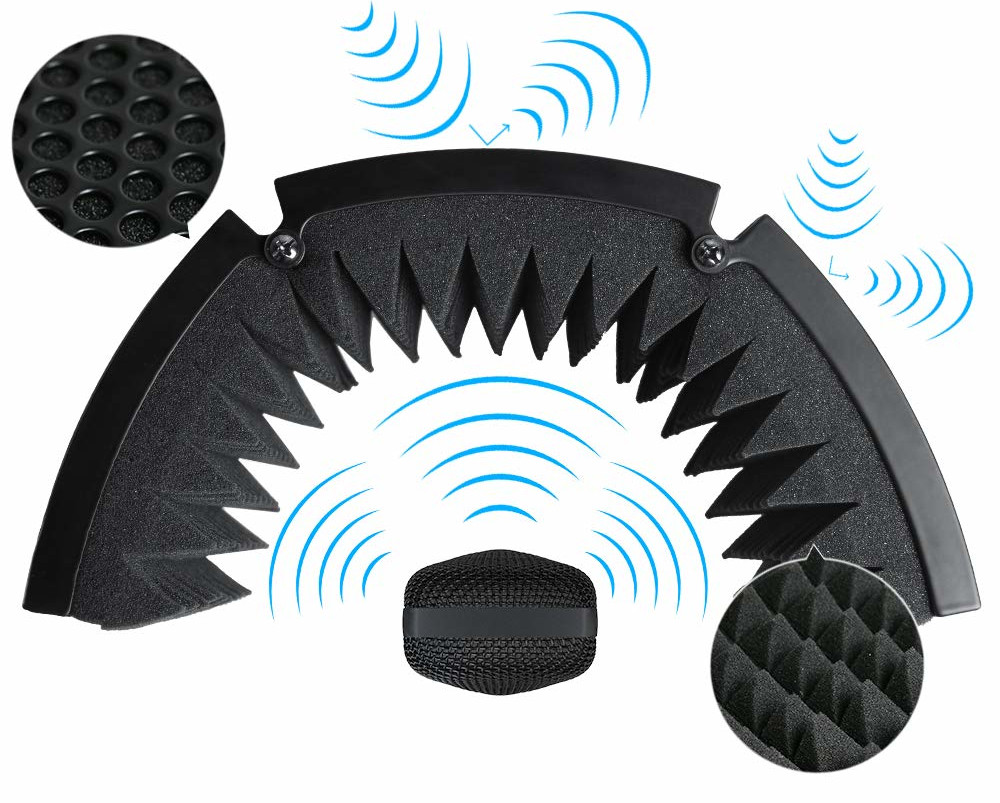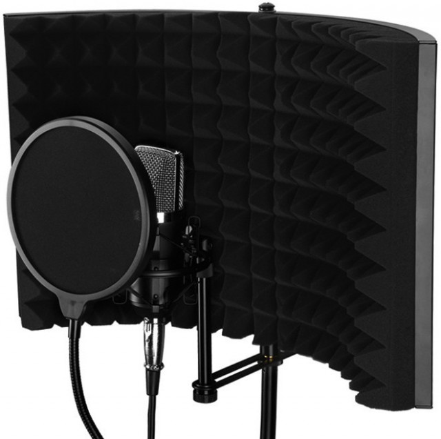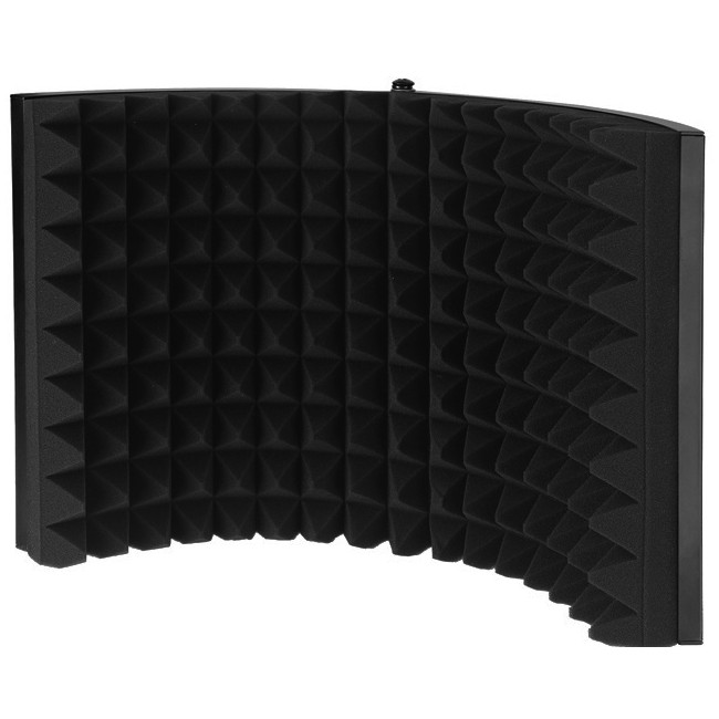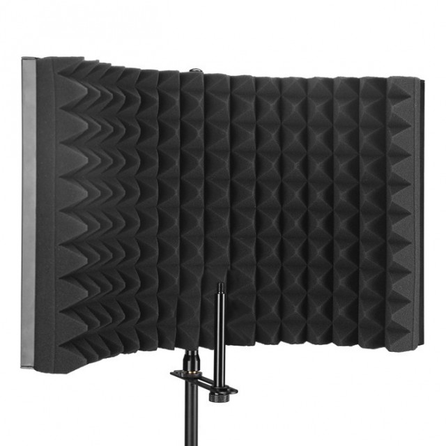 Es ideal para grabar voces, podcasts, locuciones, etc. La pared interior está fabricada con espuma acústica de alta calidad que absorbe el ruido, mientras que la pared exterior está recubierta por una estructura de aluminio que garantiza un transporte y almacenamiento seguros. La pantalla se puede fijar a un soporte de micrófono.