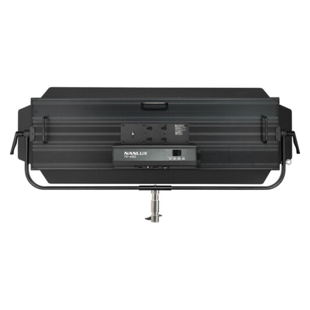 El gran panel LED Nanlux TK-450 ofrece, gracias a sus LED de alta calidad y a su amplia superficie, una iluminación suave y natural. La luz del panel tiene una temperatura de color constante de 5600 K y una alta precisión cromática CRI/TLCI de 96/98. Igualmente impresionante es la oferta de opciones de control remoto (DMX, Bluetooth, LumenRadio, DMX y CRMX) y la gama de 11 efectos. El panel se alimenta mediante el adaptador de red incluido u opcionalmente a través de baterías V-Mount y cuenta con refrigeración pasiva, por lo que también es adecuado para iluminar localizaciones de rodaje silenciosas...