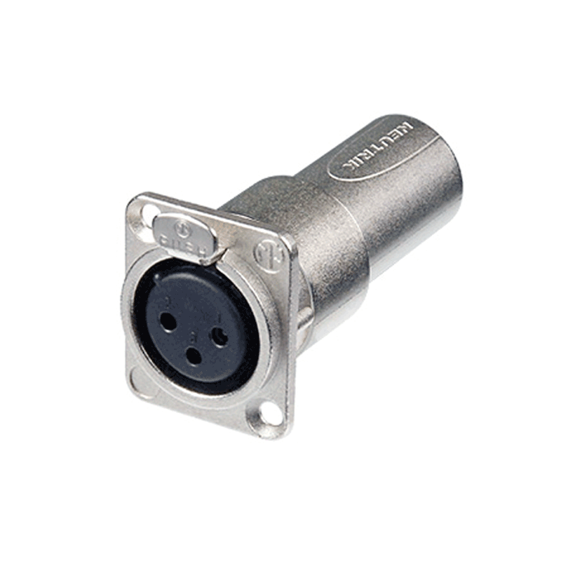 El Neutrik NC3FXX (hembra) esun conector XLRde 3 polospara cable con carcasa de níquel