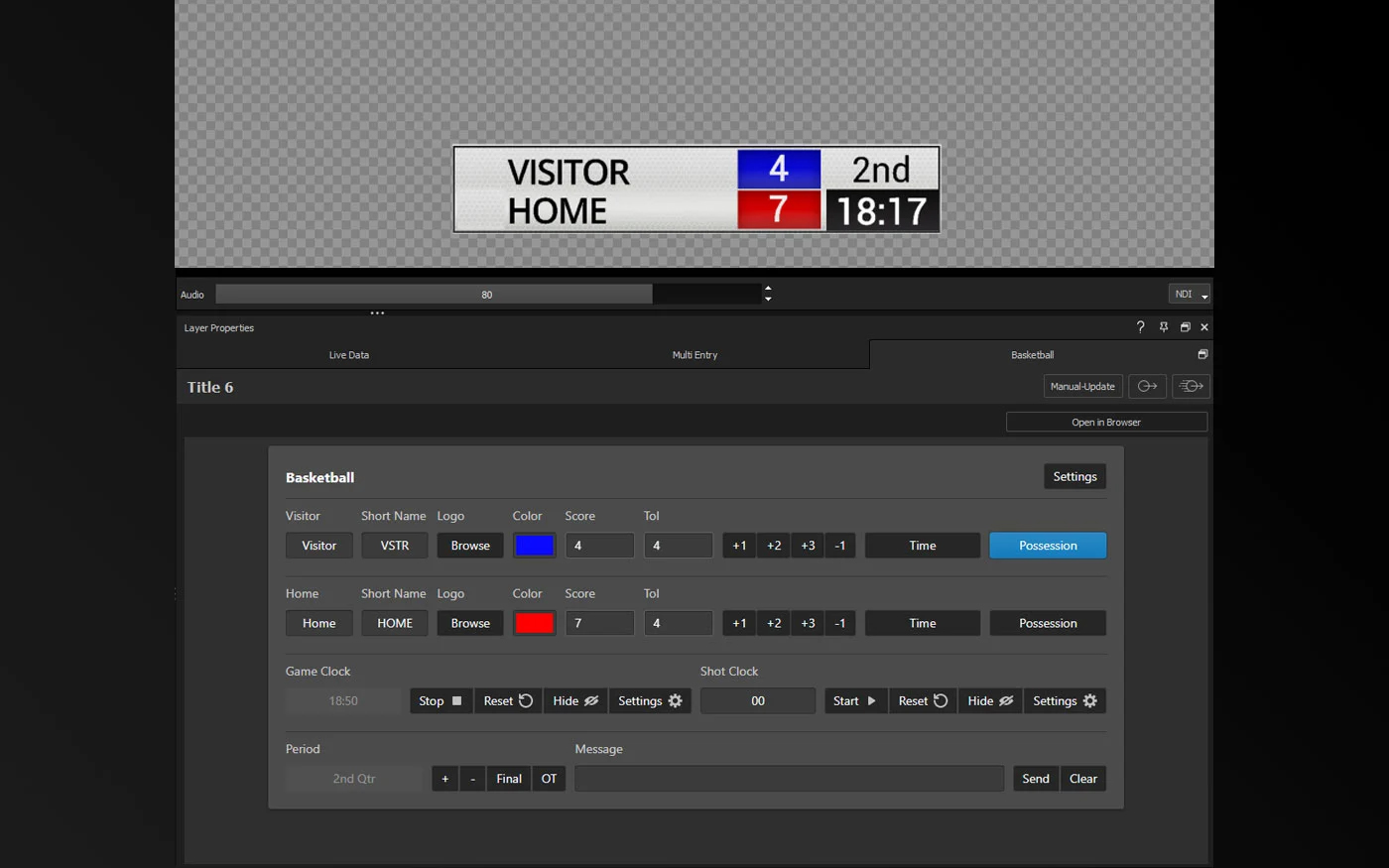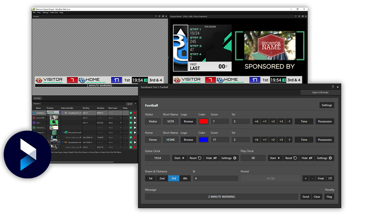 Versión especializada de la aplicación Titler Live para gráficos en directo, diseñada específicamente para programas deportivos, incluyendo marcadores, actualizaciones en tiempo real del estado de los partidos o carreras, etc.