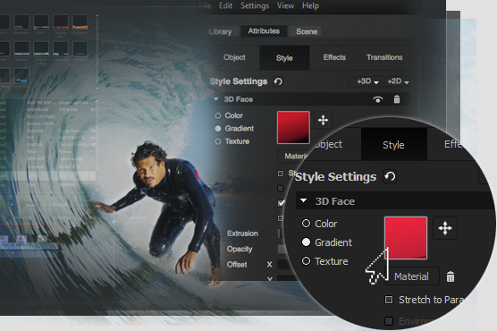 Una vez que elijas una plantilla, selecciona el aspecto deseado mediante una amplia gama de potentes controles. En Titler Pro 4 puedes personalizar el color, la forma, el ángulo, la iluminación y otros elementos en un instante.