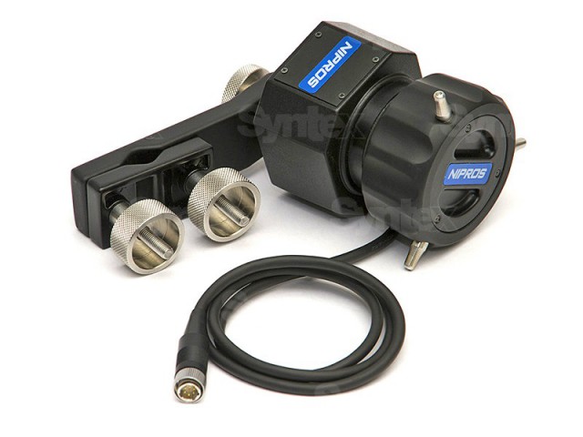 El controlador de enfoque FR-S10 para la interfaz de control Sony CBK-DCB01 de Nipros está diseñado para el control remoto del enfoque de determinados objetivos servo montados en cámaras Sony, como las PMW-300K1/K2, 400K, EX-3, F3 y F5. Se conecta a la interfaz de control Sony CBK-DCB01 mediante un cable de 6 pines y está equipada con una rueda para ajustar el enfoque y una abrazadera para fijarla al mango del trípode.