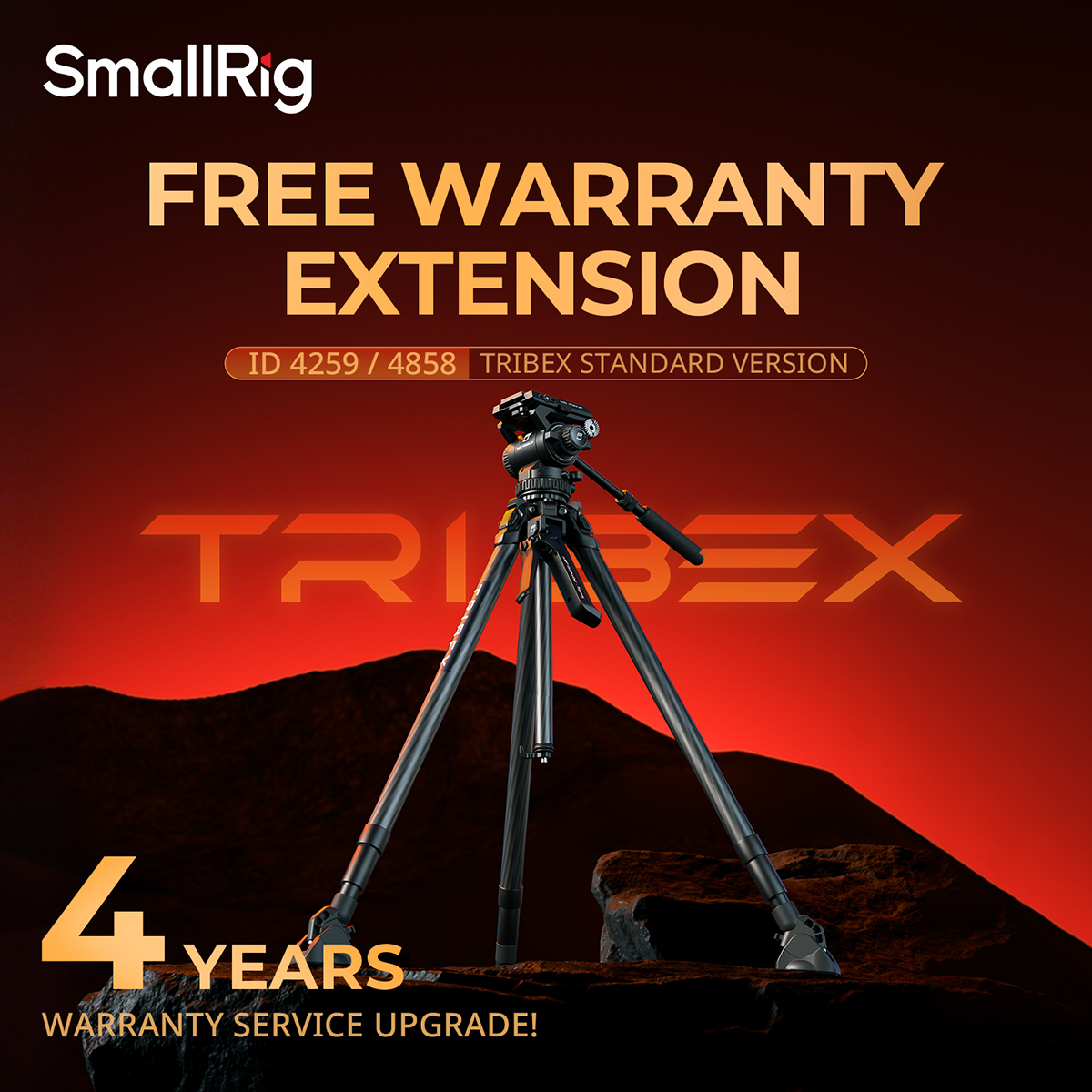 Tenemos una gran noticia de SmallRig: ¡sus trípodesSmallRig x Potato Jet TRIBEX Hydraulic Carbon Fiber Tripod 4858 y SmallRig x Potato Jet Tribex Hydraulic Carbon Fiber Tripod Kit 4259 acaban de obtener una ampliación de la garantía a 4 años!