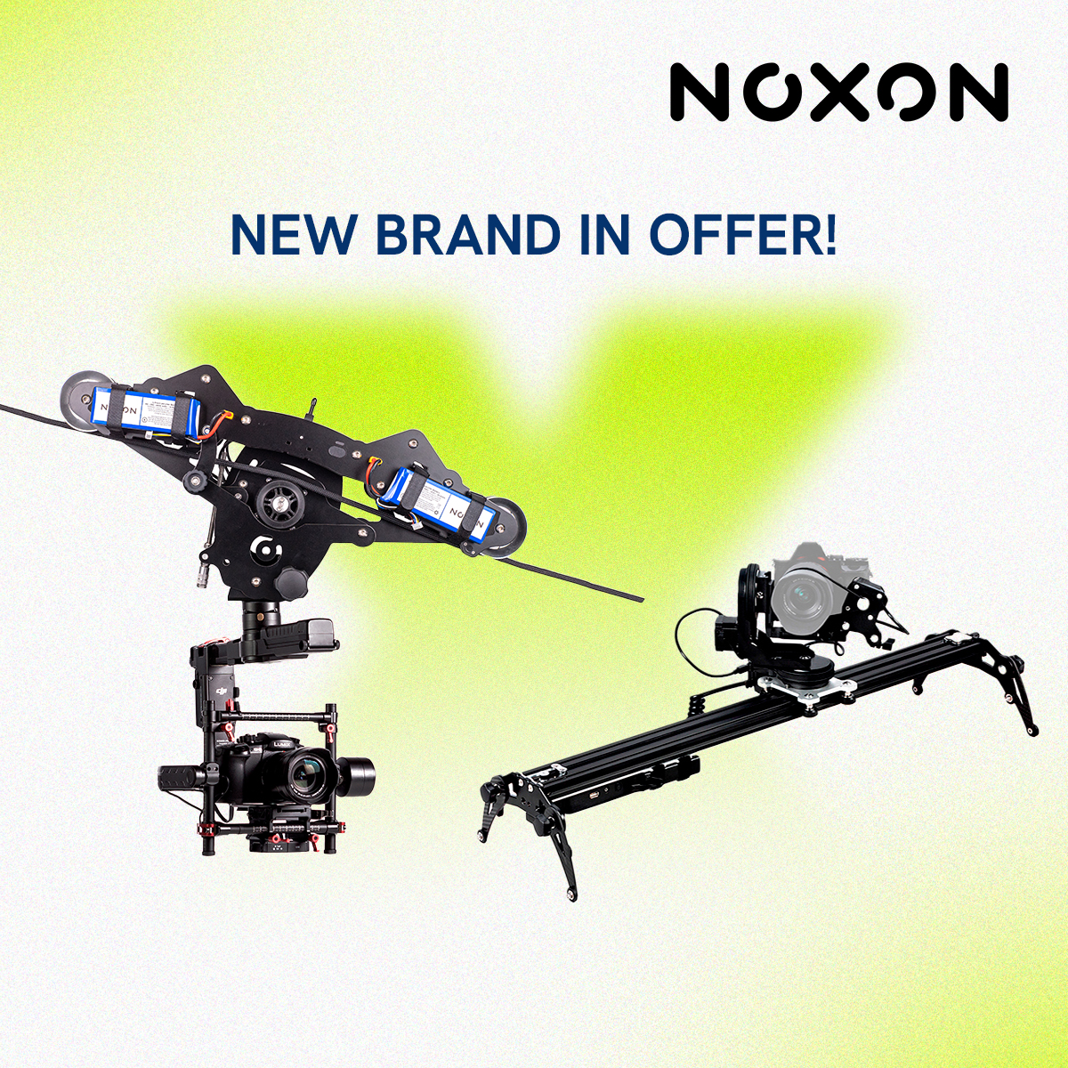Entre los productos clave de Noxon se encuentran el Mod Slider, la plataforma giratoria 360 Turntable, el sistema profesional de cámara con cableHigh-Speed Cablecam y la Portable Wirecam.