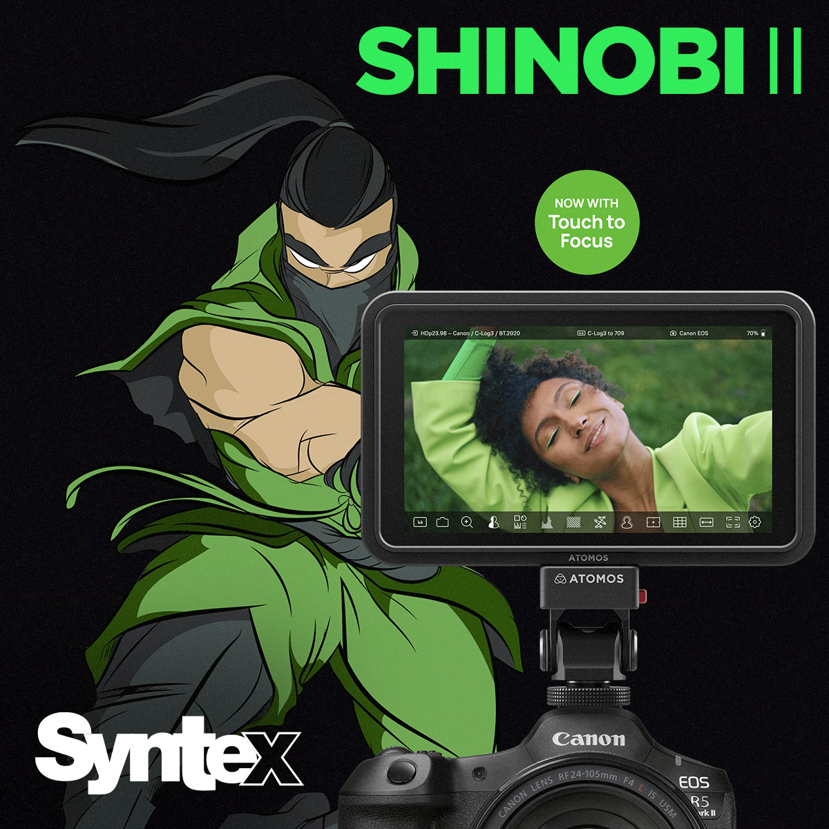 Atomos ha lanzado la primera gran actualización para el monitor Shinobi II, 11/02/2020, que incorpora la función Touch to Focus para determinadas cámaras, el control de cámaras de las marcas Fujifilm y Nikon, así como los modos de color ARRI False Color y EL ZONE. La función Touch to Focus era una de las más solicitadas por los primeros usuarios y permite ajustar el punto de enfoque de la cámara directamente a través de la interfaz táctil del monitor Shinobi II. Las cámaras compatibles con la función Touch to Focus incluyen la Canon EOS R6 Mark II, la Panasonic LUMIX S5 II y S5 II X, la Sony A7 IV, A7S III y ZV-E10 II, y la Fujifilm GFX100 II y X-S20.