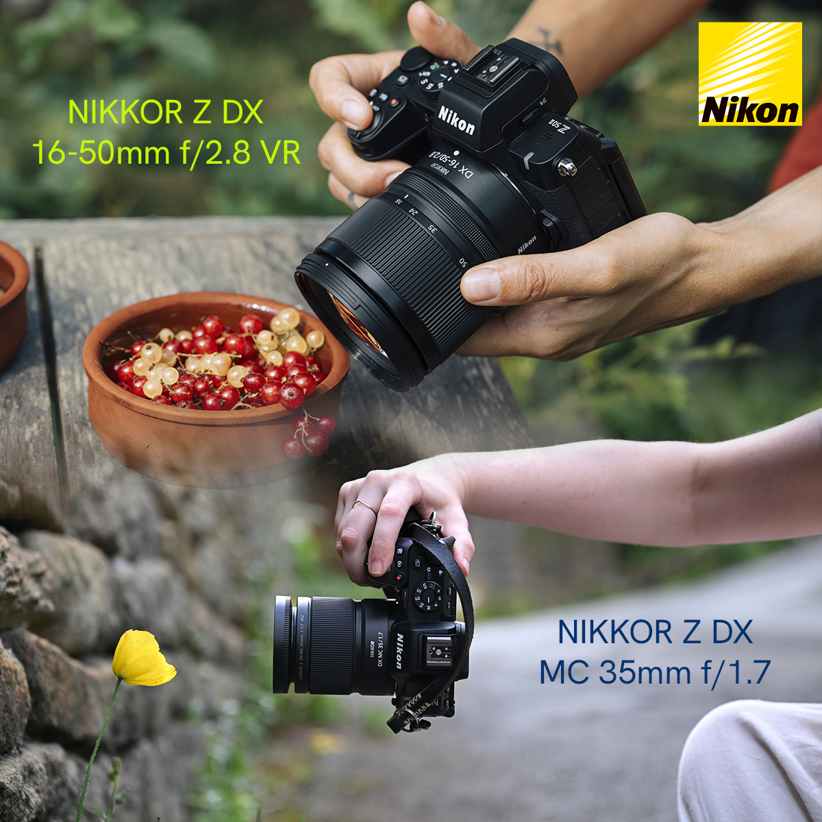 Nikon ha ampliado la gama de objetivos NIKKOR Z de formato DX con dos potentes objetivos de gran apertura: el objetivo zoom básicoNIKKOR Z DX 16-50 mm f/2.8 VR y el objetivo macro NIKKOR Z DX MC 35 mm f/1.7. Diseñados para inspirar, estos objetivos luminosos con montura Z para el formato DX ofrecen imágenes nítidas de alta resolución, un bonito efecto bokeh y un excelente rendimiento incluso con poca luz. Son ideales tanto para vídeo como para fotografía y, gracias a su peso reducido y a su construcción sellada, son fáciles de transportar.