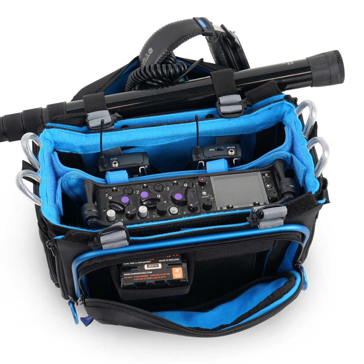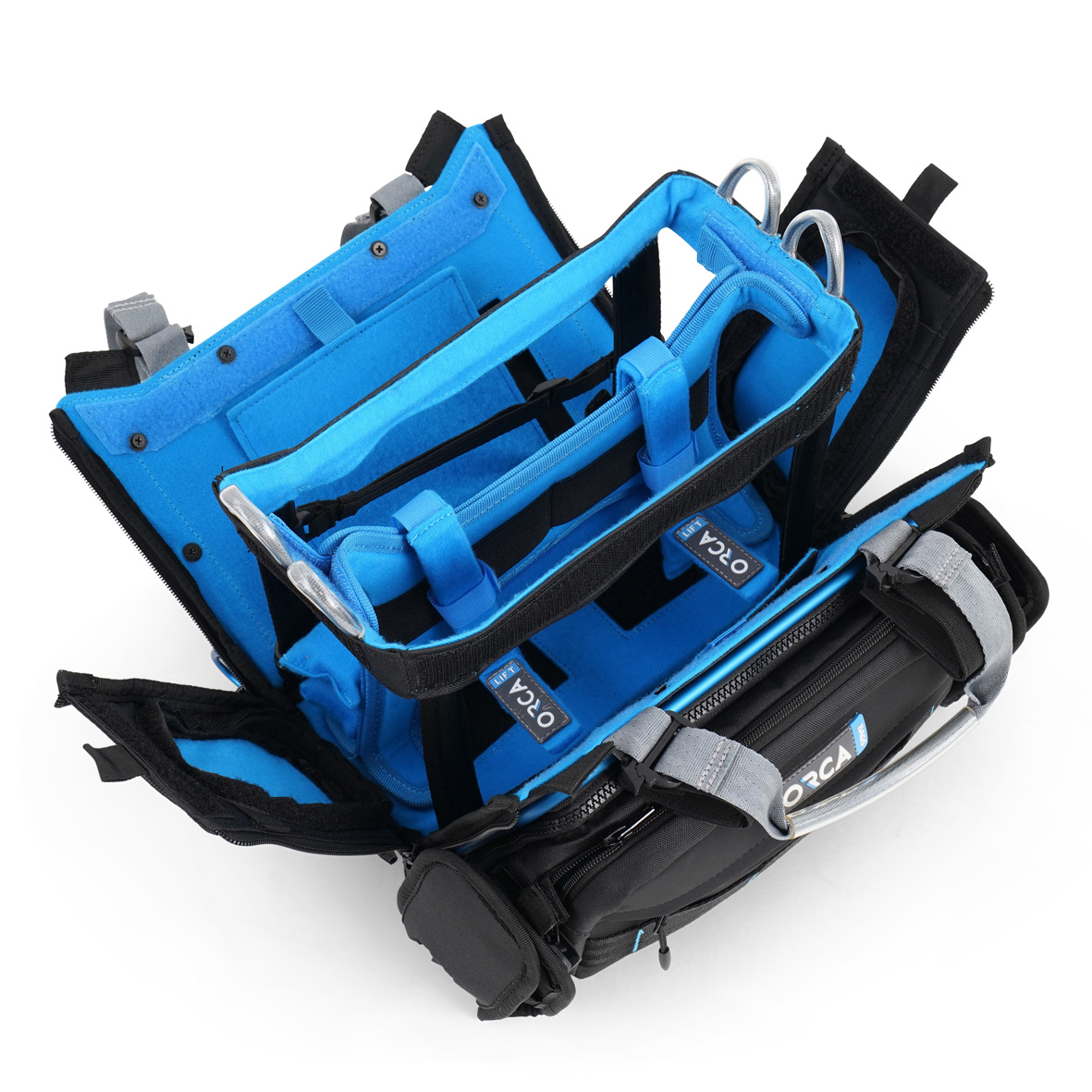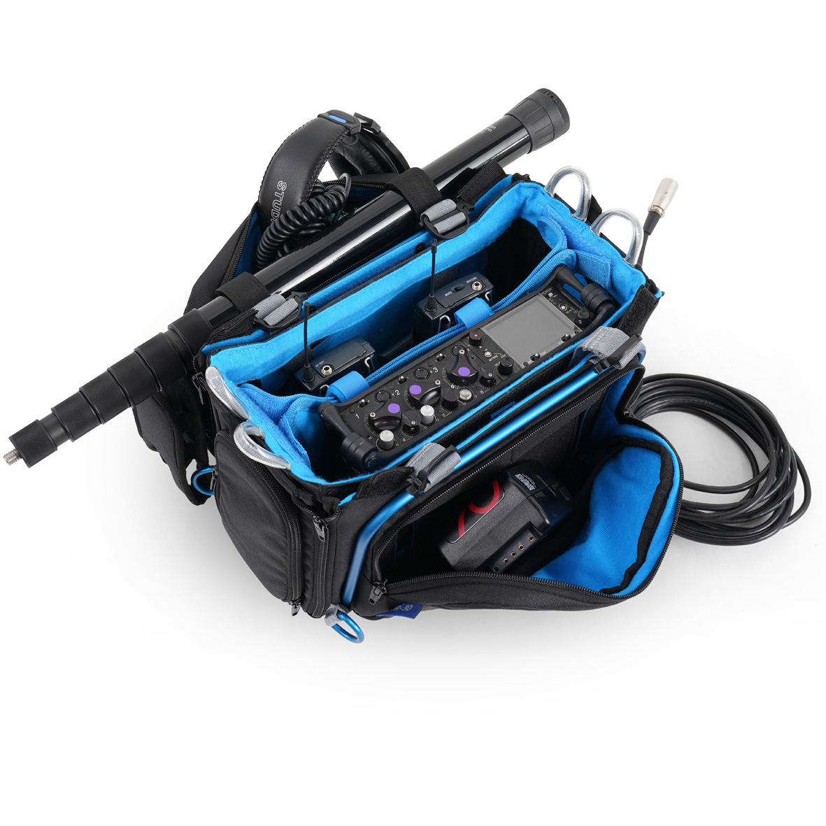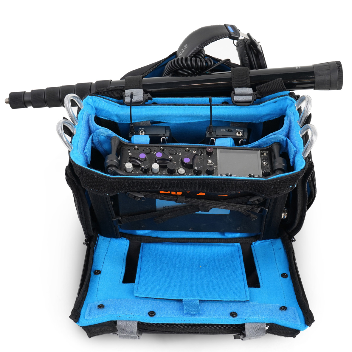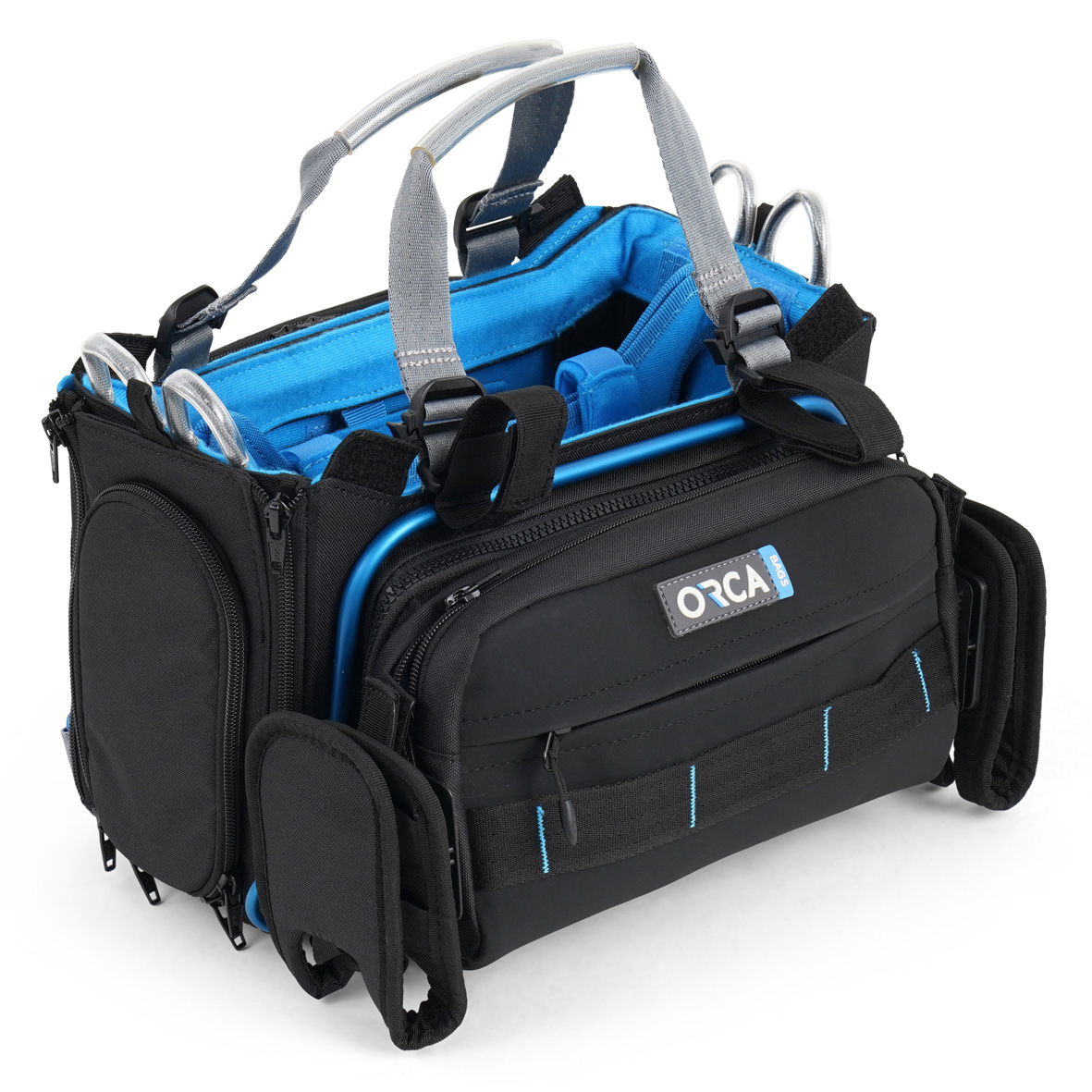 La funda para la mesa de mezclas Orca OR-30 cuenta con un panel frontal fácilmente desmontable que puede utilizarse como funda independiente para guardar accesorios. La OR-30 ofrece fundas opcionales en tres colores diferentes: negro, azul y gris.* La OR-30 está recomendada para Zaxcom Max; Sound Devices 633, 833 y 888, y mesas de mezclas de tamaño similar.
