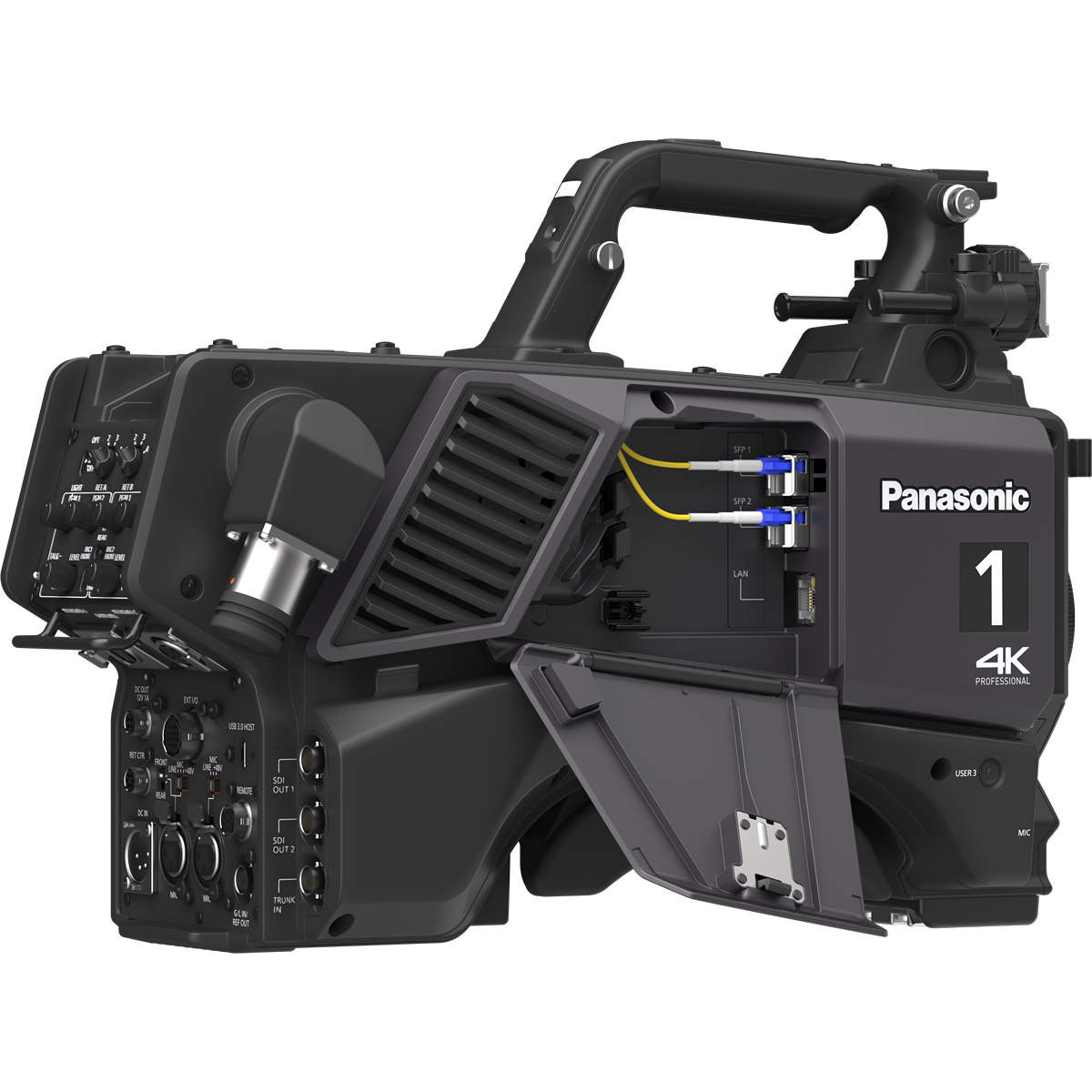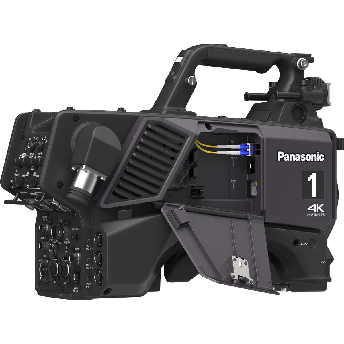 La cámara AK-UCX100 está diseñada para un manejo sencillo como parte de la familia de cámaras de estudio de Panasonic y simplifica los flujos de trabajo in situ. Los creadores de contenido tienen la posibilidad de elegir la mejor forma de funcionamiento, con o sin unidad de control de cámara (CCU). La cámara AK-UCX100 admite salidas SDI-3G y 12G-SDI directamente desde el cabezal de la cámara y la conexión directa de un panel de control remoto, por lo que puede funcionar como una unidad independiente. El funcionamiento independiente es totalmente operativo cuando se utiliza una conexión SMPTE ST 2110 de 25 Gb al cabezal de la cámara. El nuevo adaptador opcional Camera Fiber Adaptor AK-CFA100 permite introducir la alimentación de la cámara en un cable óptico híbrido estándar SMPTE ST 311 para el funcionamiento autónomo de la cámara o para la alimentación local cuando se utiliza con una unidad CCU. Los usuarios pueden aprovechar ambos modos según las necesidades de la producción. En la producción de contenido en un estudio tradicional con una unidad CCU, la cámara se empareja con la unidad de control AK-UCU700, que proporciona todos los puntos de conexión tradicionales. La AK-UCX100 se puede emparejar fácilmente con cualquier cámara Panasonic, incluida la cámara de instalación AK-UE160, garantizando así una calidad de producción coherente y completa.