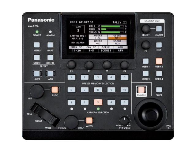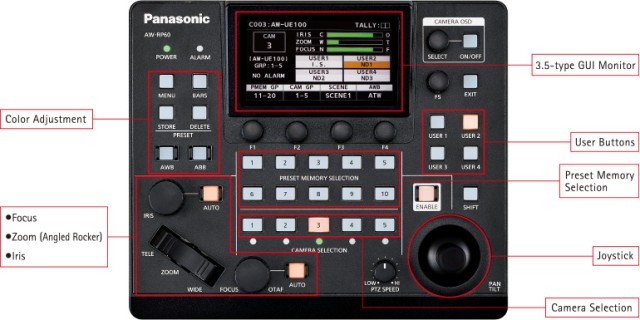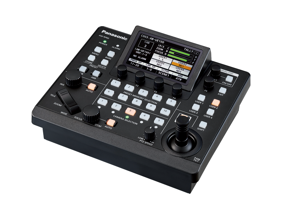 El nuevo joystick permite realizar movimientos fluidos de giro e inclinación y garantiza una captura precisa de la imagen deseada. El agarre del joystick es aproximadamente 1,5 veces mayor que en el modelo anterior AW-RP50, lo que permite un control más estable.