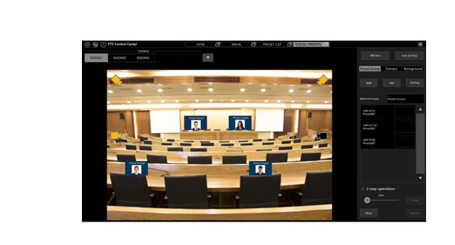 Con esta solución, los usuarios pueden agrupar cámaras y asignar posiciones preestablecidas, para luego representar esos preajustes visualmente mediante imágenes personalizadas o capturas de pantalla. Estos iconos aparecen en la interfaz gráfica de usuario, lo que permite a los operadores seleccionar rápidamente un ángulo o una posición de cámara con solo hacer clic en una imagen, lo que resulta especialmente útil para producciones en directo, eventos, estudios o lugares de culto.