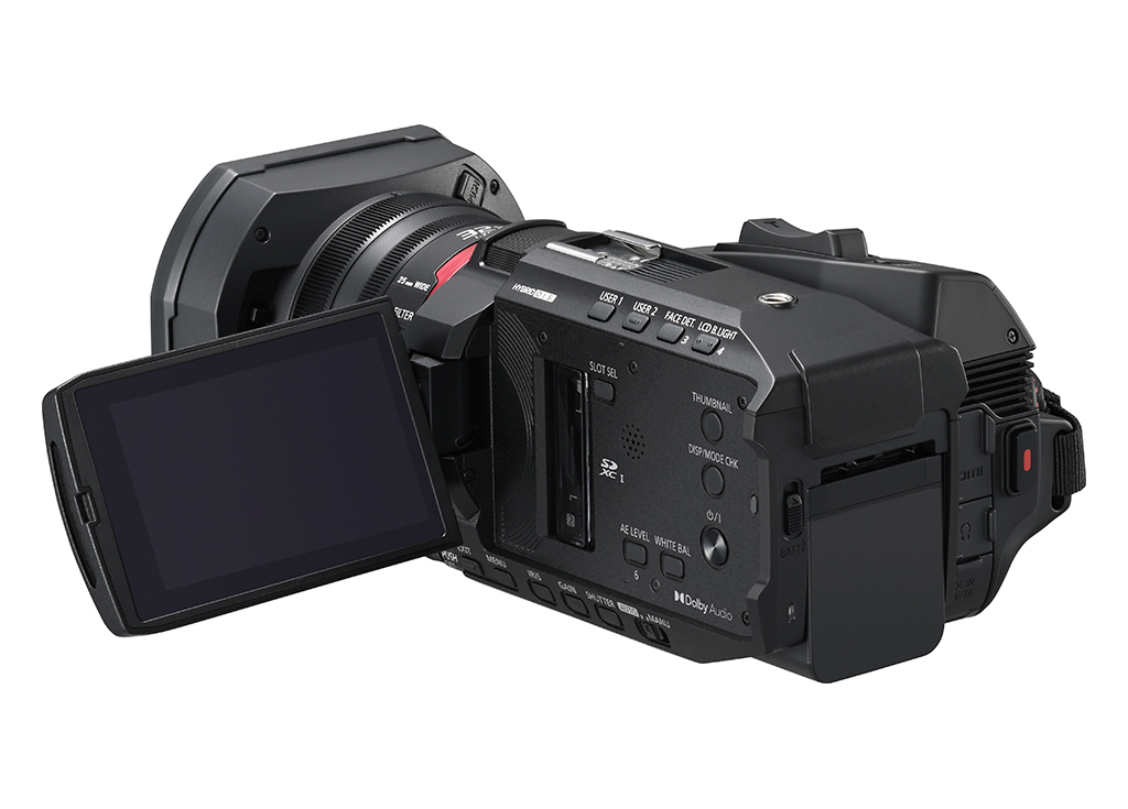Cámara de vídeo 4K de alta calidad: compacta y ligera, con grabación a 60 fotogramas por segundo, objetivo gran angular de 25 mm, zoom óptico de 24 aumentos y una gran pantalla LCD. Disponible a partir de abril de 2025.