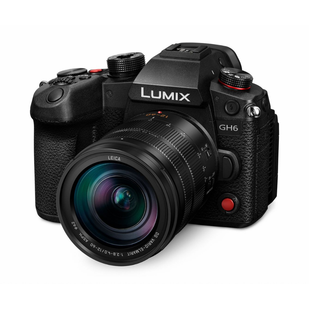 ¡El nuevo modelo insignia de la gama LUMIX G: la GH6! La GH6 incorpora un sensor totalmente nuevo de 25,2 MP y un procesador de imagen Venus Engine considerablemente más potente (hasta el doble) para la grabación de material de 10 bits 4:2:0 5,7Kp60 (300 Mb/s LongGOP H.265/HEVC, LPCM) o 4:2:2 C4K a 60p (800 Mb/s y 600 Mb/s ALL-Intra) y 4:2:0 4K a 120p (sin recorte; 300 Mb/s LongGOP H.265/HEVC, LPCM) o grabación VFR de vídeo FHD de 10 bits 4:2:0 con una frecuencia de fotogramas de hasta 300 fps, sin límite de tiempo y sin riesgo de sobrecalentamiento de los componentes electrónicos. Ofrece un rango dinámico de 12+ EV V-Log/V-Gamut o 13+ EV (Dynamic Range Boost), grabación simultánea interna/externa de vídeo 4K de 10 bits, ranuras para tarjetas CFexpress (Tipo B) y SD (UHS II V90) para grabar en MOV/MP4, incluyendo ahora ProRes 422 HQ y ProRes 422, audio de cuatro canales (24 bits, 48/96 kHz; con el accesorio opcional DMW-XLR1), interfaz HDMI 2.1 (con soporte para 4Kp120 tras actualización de firmware), USB-C PD (alimentación/carga simultánea), eficaz estabilizador de cinco ejes (hasta 7,5 EV), ajuste del funcionamiento del anillo de enfoque [Lineal / No lineal], disparo en ráfaga a una velocidad de hasta 75 fotogramas/s y, por supuesto, una construcción resistente a la humedad, el polvo y el frío (hasta -10 °C). A la venta a partir de marzo de 2022. Kit de cuerpo y objetivo Panasonic Leica DG Vario-Elmarit 12-60 mm f/2,8-4.
