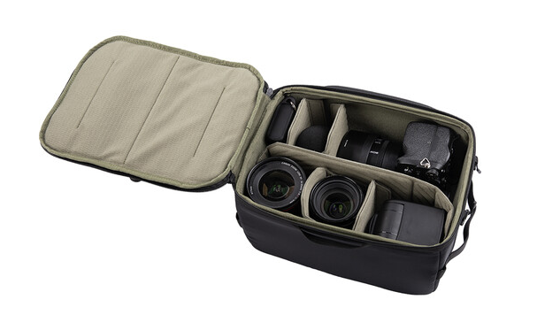 En el interior hay un conjunto de separadores ajustables con velcro que te permiten personalizar la distribución para que quepan de forma segura cámaras, objetivos o drones compactos y accesorios. Su tamaño reducido es ideal para equipos compactos y, al mismo tiempo, ofrece suficiente protección y organización. El estuche es ligero y portátil, y se puede utilizar como solución independiente para el transporte o colocarlo dentro de una mochila compatible.