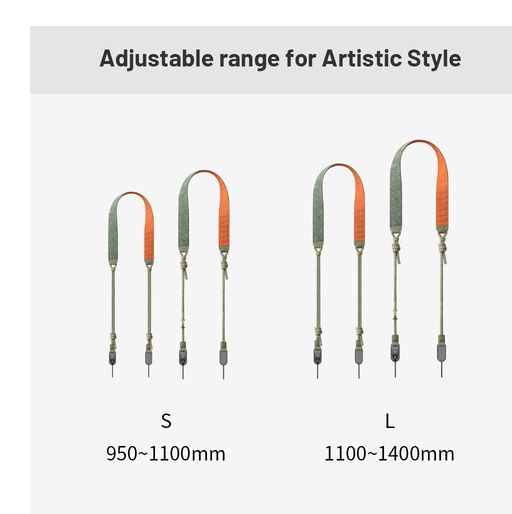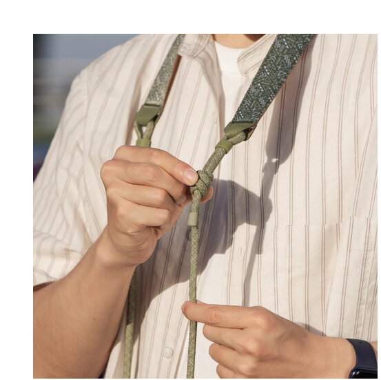 La correa trenzada de Dyneema ofrece una resistencia excepcional, soporta hasta 90 kg y está equipada con conectores rápidos para desenganchar la cámara rápidamente. La longitud ajustable de la correa oscila entre 99 y 140 cm, lo que la hace versátil para diferentes tipos de complexión y preferencias de uso. Su perfil delgado de 1,3 cm garantiza movilidad sin volumen, mientras que el elegante acabado en negro complementa cualquier configuración de cámara.