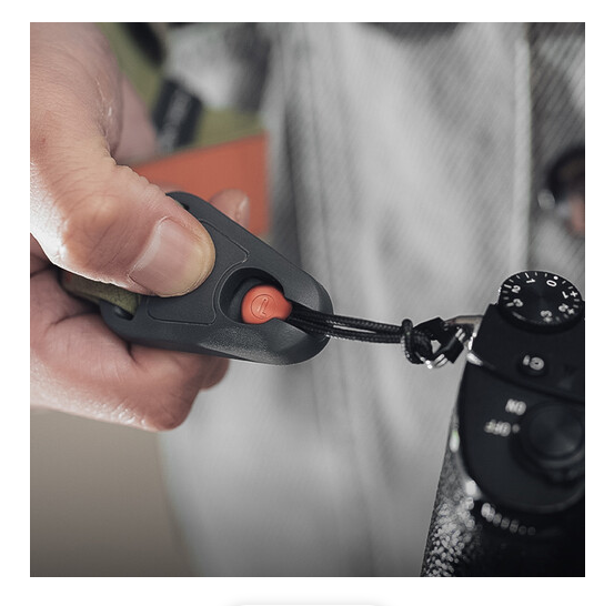 Los enganches rápidos facilitan la fijación o retirada de la cámara, y el cierre magnético oculto convierte la correa en una elegante pulsera cuando no la utilizas, por lo que es práctica y elegante. La correa es ligera, pesa solo 34 g, es resistente sin añadir volumen, y su anchura de 4,5 cm garantiza comodidad y estabilidad al fotografiar.