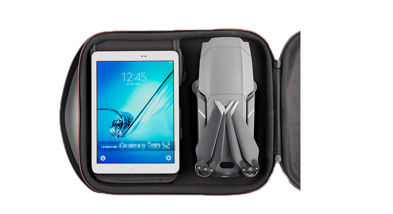 Para mayor versatilidad, el compartimento puede albergar una tableta de 7,9 pulgadas si se retiran las palancas del mando a distancia. El doble cierre de cremallera y la resistencia al agua y al polvo según la norma IP34 garantizan la protección de tu equipo en diversos entornos. La funda también cuenta con un asa y una correa de hombro extraíble, por lo que es fácil de transportar, tanto si te desplazas por los alrededores como si te llevas el dron de viaje.