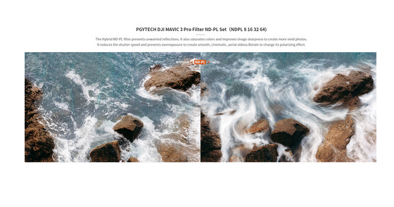 El filtro polarizador circular PGYTECH P-43A-031 está diseñado específicamente para el DJI Mavic 3 Pro con el fin de mejorar la calidad de la imagen en entornos luminosos o con reflejos. Elimina eficazmente los reflejos no metálicos de superficies como el agua, el cristal y la nieve, y aumenta la intensidad del color y el contraste en tus tomas aéreas.