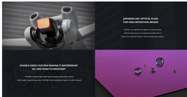 El filtro UV PGYTECH P-40B-010 para DJI Mini 3 está diseñado para proteger la cámara de tu dron y, al mismo tiempo, conservar una imagen natural y de alta calidad. Gracias al cristal óptico japonés AGC con doble recubrimiento, el filtro reduce eficazmente la radiación ultravioleta, que puede hacer que las imágenes se vean demasiado azules o descoloridas, especialmente al volar en entornos abiertos, como campos, montañas o zonas costeras.