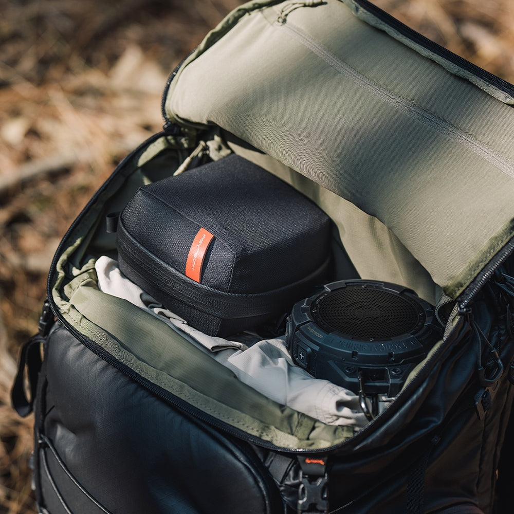 Gracias a su tamaño compacto, el estuche cabe en la mayoría de las bolsas, mochilas y maletas de viaje para cámaras. Está diseñado para su uso sobre el terreno, donde ofrece una protección fiable contra el polvo, la humedad y los daños mecánicos. La carcasa exterior rígida tiene un acabado repelente al agua y se cierra con un imán, lo que permite un manejo sencillo con una sola mano sin comprometer la seguridad.