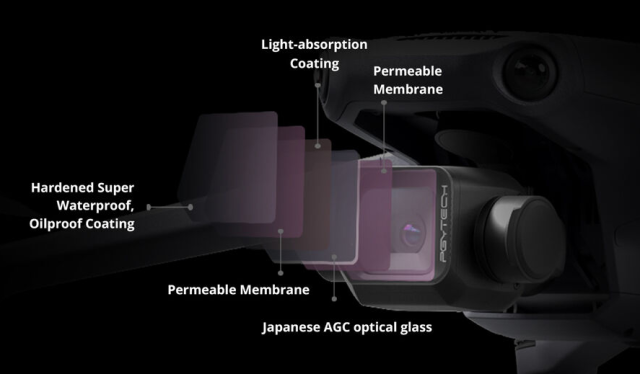 El filtro está fabricado con cristal óptico japonés AGC de doble capa y garantiza la precisión del color y un bajo índice de refracción para una imagen clara y nítida. Su revestimiento de doble cara lo hace resistente al agua, al aceite y a los arañazos, mientras que su marco de aluminio CNC, ligero y robusto, es resistente a la corrosión y está diseñado para mantener el equilibrio de vuelo del dron. Con una reducción de luz de 1 paso, este filtro CPL es ideal para fotógrafos aéreos que buscan una mayor claridad y calidad de imagen en entornos luminosos.