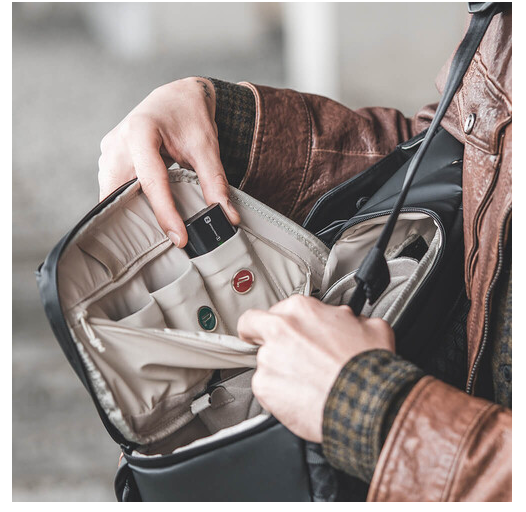 La mochila OneGo está fabricada con materiales resistentes e impermeables y ofrece una protección fiable para el uso diario y en condiciones climáticas moderadas. Otras características incluyen cierres magnéticos, cremalleras YKK resistentes, correas lumbares y pectorales para mayor estabilidad, y correas para accesorios que permiten fijar trípodes o monopiés. El paquete incluye etiquetas magnéticas con indicador de estado de la batería, que ayudan a identificar el estado de la batería o a apretar los tornillos de la cámara, añadiendo así una funcionalidad inteligente a una mochila bien diseñada.