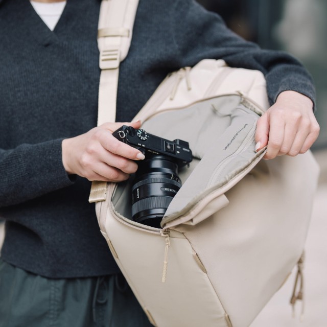 • Dos accesos rápidos: entrada lateral para sacar fácilmente la cámara y abertura superior para objetos cotidianos.