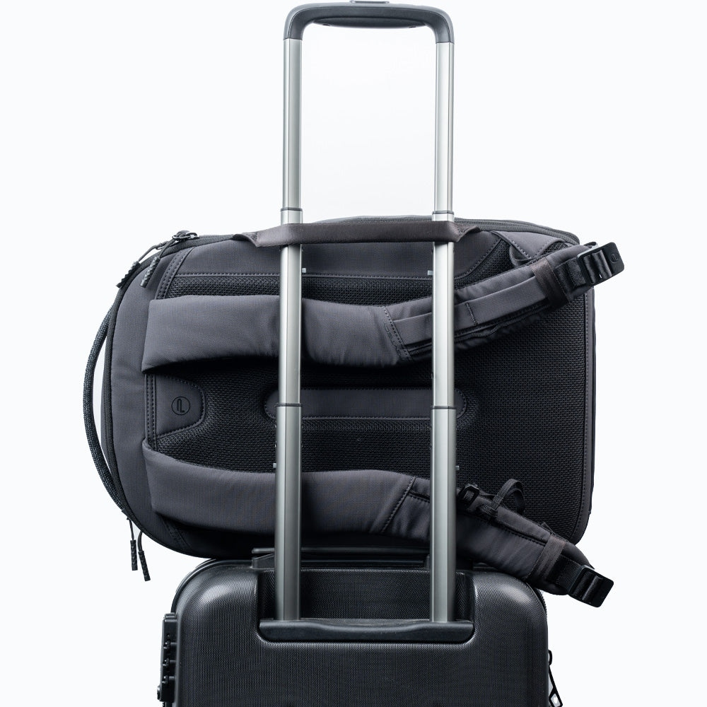 La mochila está fabricada con tejidos impermeables de alta calidad que mantienen el equipo a salvo incluso bajo la lluvia. La espalda y las correas ergonómicas garantizan la comodidad incluso durante un uso prolongado. Un complemento práctico es el túnel situado en la parte trasera para fijarla al asa de una maleta de viaje.