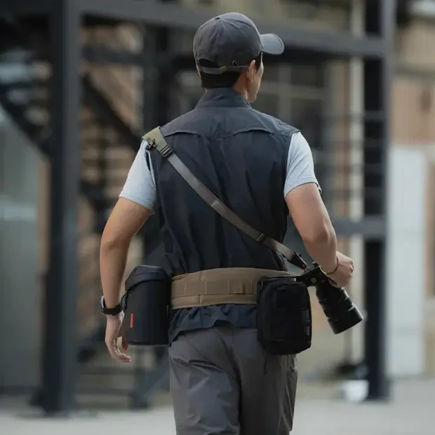 El cinturón lumbarPGYTECH OneMo Photography Waist Belt es un cinturón ajustable diseñado para llevar el equipo fotográfico de forma segura y cómoda. Gracias al sistema MOLLE, permite acoplar fundas, soportes u otros accesorios, y ayuda a distribuir uniformemente el peso de la cámara y los complementos, incluso durante un uso prolongado.