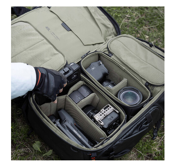 Mochila fotográfica profesional de 40 litros con compartimento superior ampliable de 10 litros