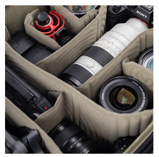 Compartimento interior ajustable para la cámara con separadores de velcro para una organización flexible