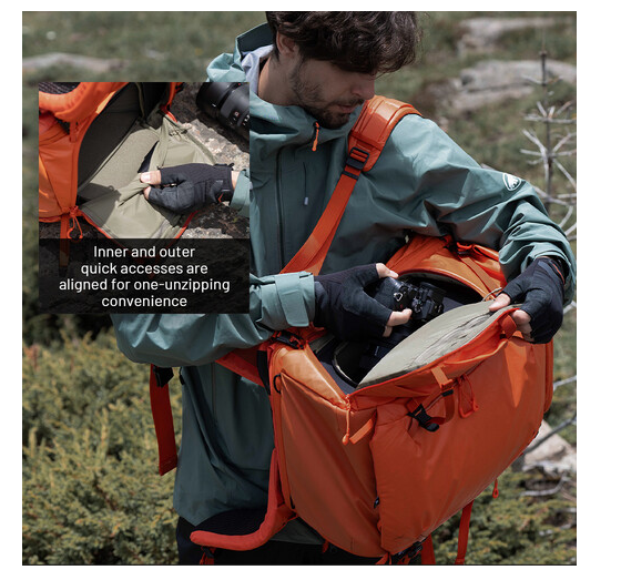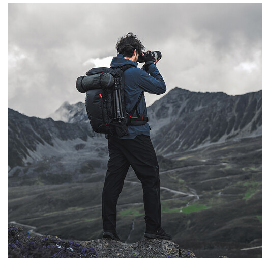 Las correas de hombro y lumbares moldeadas en 3D, el panel trasero ergonómico de malla transpirable y el armazón de aluminio 3D de calidad aeronáutica, que ayuda a distribuir el peso de manera uniforme, aumentan la comodidad y la estabilidad. Elementos de diseño prácticos, como el acceso lateral rápido, el bolsillo lateral para la botella de agua y el bolsillo oculto en la parte inferior, garantizan la comodidad durante largas jornadas de fotografía. Gracias al sistema de ajuste de la longitud de la espalda de 4 posiciones, la mochila se puede adaptar para que se ajuste de forma cómoda y segura a diferentes tipos de complexión.