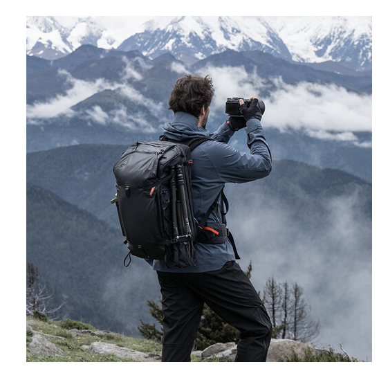 La PGYTECH OnePro Focux Backpack 35L es una resistente mochila para exteriores diseñada para cámaras, con capacidad para hasta dos cámaras, once objetivos y un dron. Gracias a su espacio de almacenamiento ampliable, al material HyperGuard resistente a las salpicaduras, a sus puntos de acceso inteligentes y a la comodidad que ofrece durante todo el día, está pensada para fotógrafos y cineastas que viajan con frecuencia.