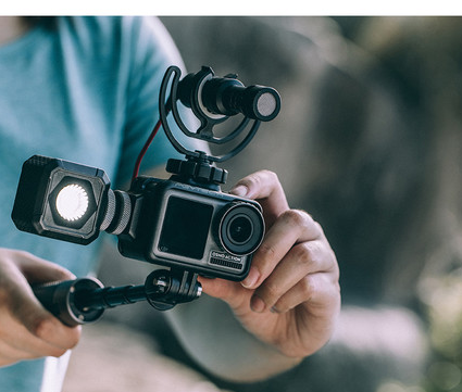 La carcasa PGYTECH Camera Cage para Osmo Action presenta un diseño que se adapta perfectamente a la forma de la cámara y cuenta con varios puntos de fijación para accesorios, lo que te permite acoplar micrófonos, luces y empuñaduras sin perder el acceso a la pantalla ni a los controles de la cámara.