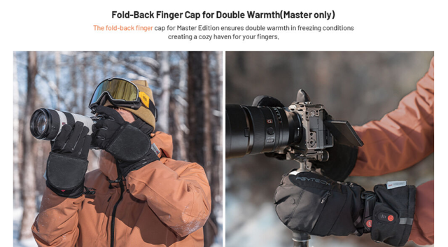 Los guantes PGYTECH P-GM-202 Battery-Heated Master Photography Gloves están diseñados para fotógrafos que trabajan en condiciones invernales adversas. Los guantes están equipados con tecnología de calefacción de grafeno y proporcionan un calor rápido y uniforme en tres ajustes de temperatura. Se alimentan con dos baterías de tipo C con una capacidad de 4000 mAh, que garantizan una calefacción más duradera e incluso pueden servir como cargadores portátiles de emergencia para tus dispositivos.