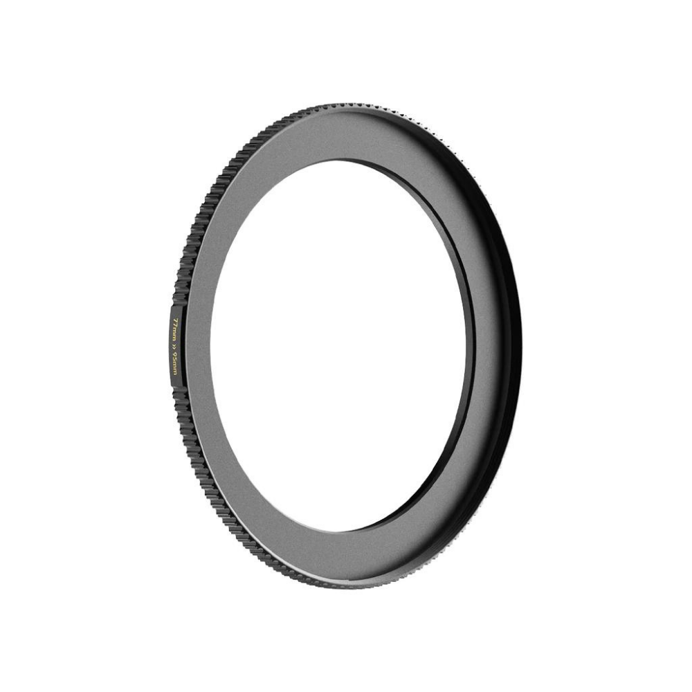 El anillo adaptador PolarPro Step-Up Ring de 52-67 mm permite utilizar filtros con rosca de 67 mm en objetivos con rosca de 52 mm. Cuenta con bordes estriados que garantizan un agarre más firme al colocarlo o retirarlo del objetivo. Este anillo adaptador tiene una estructura de latón que evita que se atasque o se enganche, y un acabado negro mate que minimiza los reflejos.