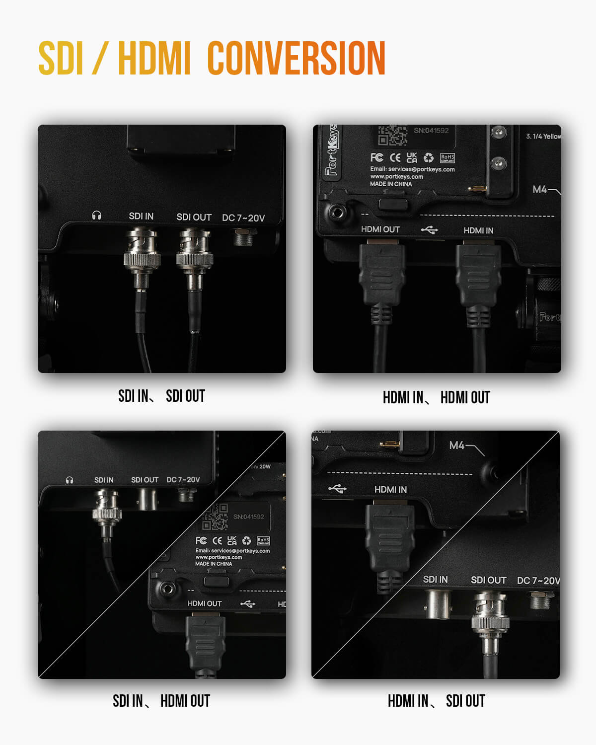 • 1 entrada HDMI 2.0, 1 salida HDMI, 1 entrada 3G-SDI, 1 salida 3G-SDI con conversión cruzada.