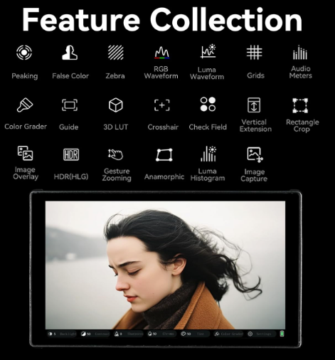 El Portkeys LH5C es un innovador monitor de campo con pantalla táctil, diseñado para la producción de vídeo moderna, que ofrece a los cineastas un control intuitivo de la cámara y una visualización de alta fidelidad en un formato portátil de 5,4 pulgadas. Su excelente sistema de control por cable se conecta directamente a dispositivos compatibles de Sony (p. ej., A7III/A7IV/A7SIII/A7RIV/FX3/FX6), Canon (p. ej., R5/R6/R7/R8/C70/C200) y Panasonic (p. ej., GH5 II/GH6/GH7/S5/S1H), lo que permite ajustar con precisión parámetros clave como la apertura, la velocidad de obturación, el ISO y el balance de blancos mediante una pantalla táctil sensible, para que no tengas que interrumpir tu trabajo manipulando la cámara. Para los usuarios de Sony, incluye un marco inteligente para el seguimiento del enfoque, y se prevén actualizaciones de firmware que ampliarán esta función a otras marcas, garantizando así la eficiencia profesional en el plató. La pantalla IPS HD de 5,4 pulgadas, apta para uso en exteriores, ofrece un brillo de 800 nits para una visibilidad nítida a la luz del sol, un ángulo de visión ultraamplio de 178°, una relación de contraste de 1000:1, profundidad de color de 10 bits, cobertura completa de Rec.709 y un 85 % de la gama DCI-P3 para una reproducción de color viva y precisa, algo fundamental para los flujos de trabajo de posproducción. El paquete incluye un parasol que mejora la usabilidad en entornos luminosos, mientras que la superficie brillante de la pantalla minimiza los reflejos y garantiza resultados consistentes.