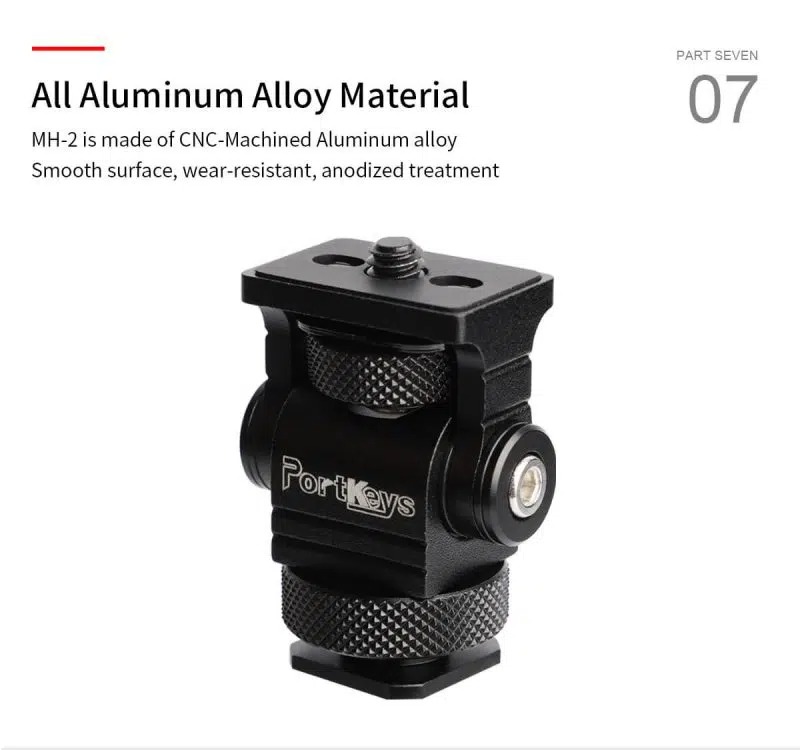 El MH-2 está fabricado en aleación de aluminio mecanizada con CNC, lo que le confiere una excelente portabilidad, estabilidad y resistencia.