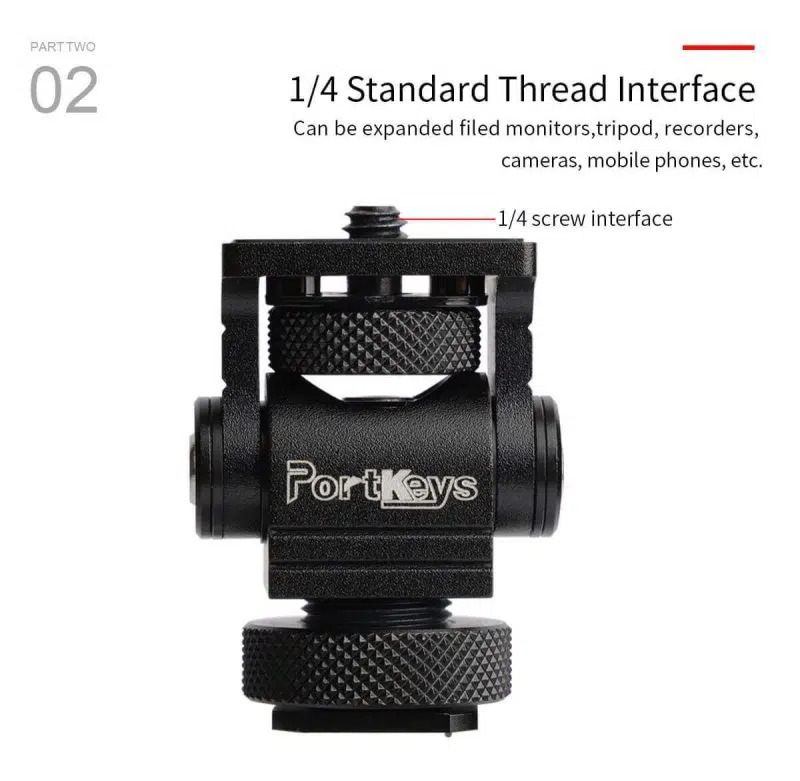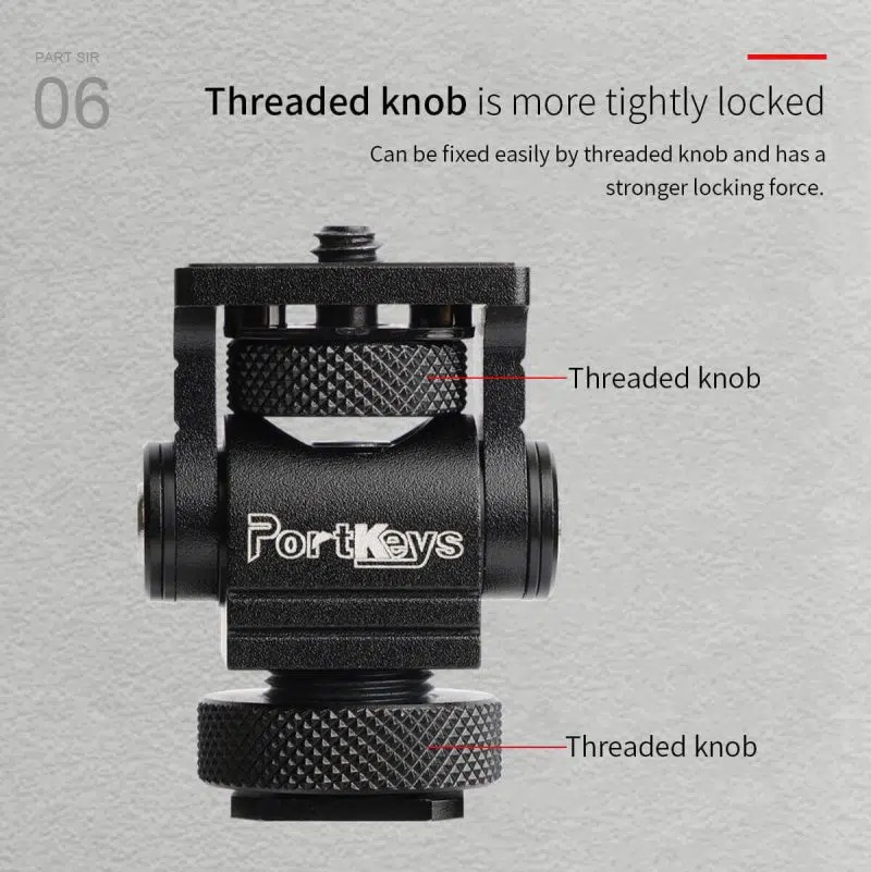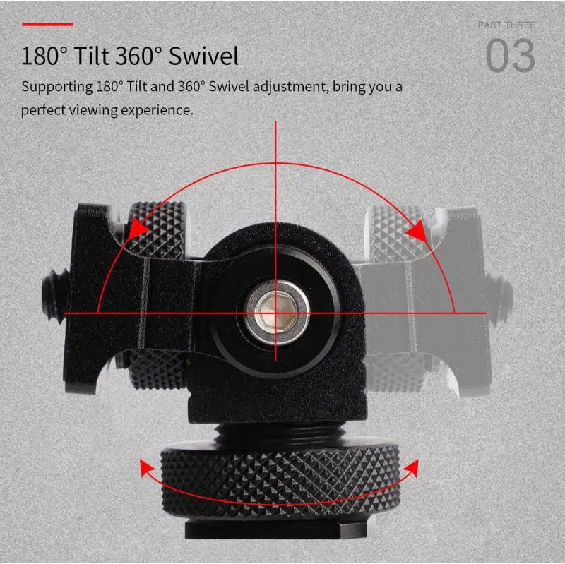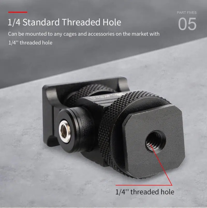 • Se fija a la cámara, a la jaula o al mango mediante un soporte Cold Shoe Mount.