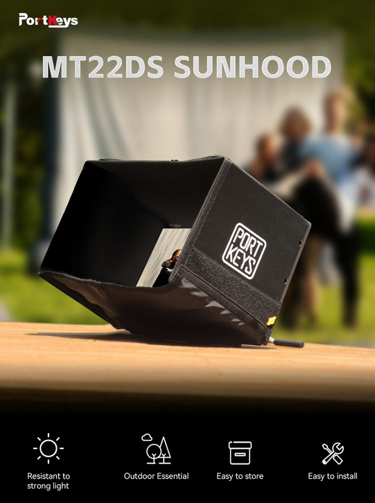 El parasol Portkeys MT22DS de 21,5" es un accesorio original diseñado específicamente para el monitor Portkeys MT22DS de 21,5", que bloquea eficazmente la luz incidente y garantiza una visibilidad nítida de la pantalla en condiciones de luz exterior intensa. Este parasol de alta calidad se caracteriza por su ajuste preciso, su fácil instalación, su estructura ligera y resistente y su elegante acabado en negro. Mejora el rendimiento durante las grabaciones en exteriores y constituye un complemento indispensable para el equipo de vídeo profesional.