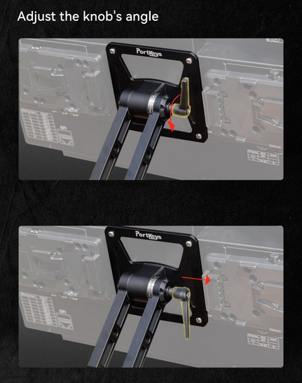 El soporte Portkeys MT22DS VESA ofrece una solución robusta y ajustable para montar el monitor MT22DS. Permite a los usuarios ajustar libremente el ángulo para que el monitor siga la línea de visión, lo que proporciona flexibilidad y practicidad en cualquier entorno. El soporte admite una inclinación de 90° y un giro de 360° para una colocación precisa. La instalación es sencilla y se puede realizar de dos maneras: fijándolo directamente a la parte trasera del MT22DS mediante los puntos de montaje incluidos o acoplándolo a las patas mágicas para obtener mayor alcance y estabilidad. El diseño compatible con VESA mide 120 mm de ancho y 246 mm de alto, lo que garantiza la compatibilidad con brazos y soportes de monitor estándar.